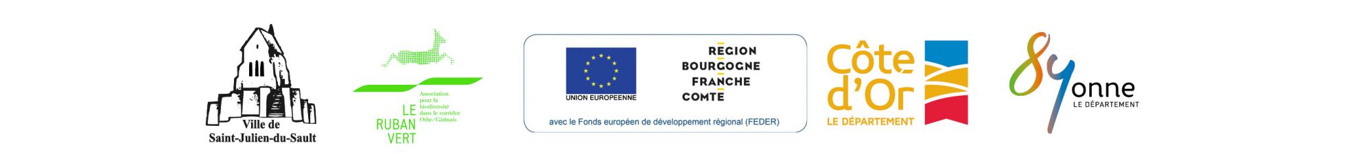 Nous remercions nos partenaires et financeurs: Le Ruban vert, la commune de Saint-Julien-du-Sault ainsi que Le Fonds européen de développement régional (FEDER) portépar la Région Bourgogne-Franche-Comté et les départements de l’Yonne et de la Côte-d’Or.