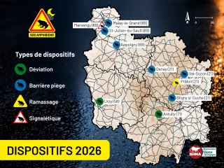 En Bourgogne, les dispositifs routiers en faveur des amphibiens constituent des actions essentielles pour limiter la mortalité liée aux déplacements saisonniers de ces espèces, particulièrement lors de leurs migrations vers les sites de reproduction. Que ce soit une déviation, une barrière piège, une opération de ramassage ou une simple signalétique, la SHNA-OFAB assure un rôle de coordination en accompagnant et en mettant en réseau les initiatives locales. Elle forme, outille et conseille les acteurs de terrain afin de permettre, selon le niveau d’implication de chacun, la mise en œuvre de projets concrets de sauvetage et de conservation. Grâce à cette dynamique collective, ces dispositifs contribuent activement à la préservation des populations d’amphibiens à l’échelle régionale. Ces actions reposent également sur l’engagement indispensable de bénévoles, que nous tenons à remercier.